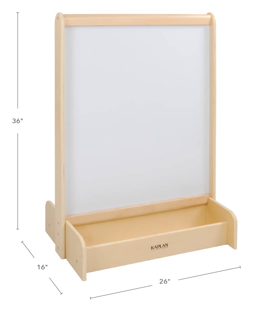 Inspire creativity and vertical building with this all-in-one Draw and Play Standing Magnetic Board. Children 2 and up can stand to draw on the write-on/wipe-off board while simultaneously using magnetic play pieces, taking creations and basic STEM activities to a whole new level. Storage at floor level on either side of the board keeps magnetic toys, dry-erase markers and play essentials organized and accessible. A sturdy birch frame makes this unique play board durable enough for continued use in the classroom. Measures 26"L x 16"W x 36"H.
