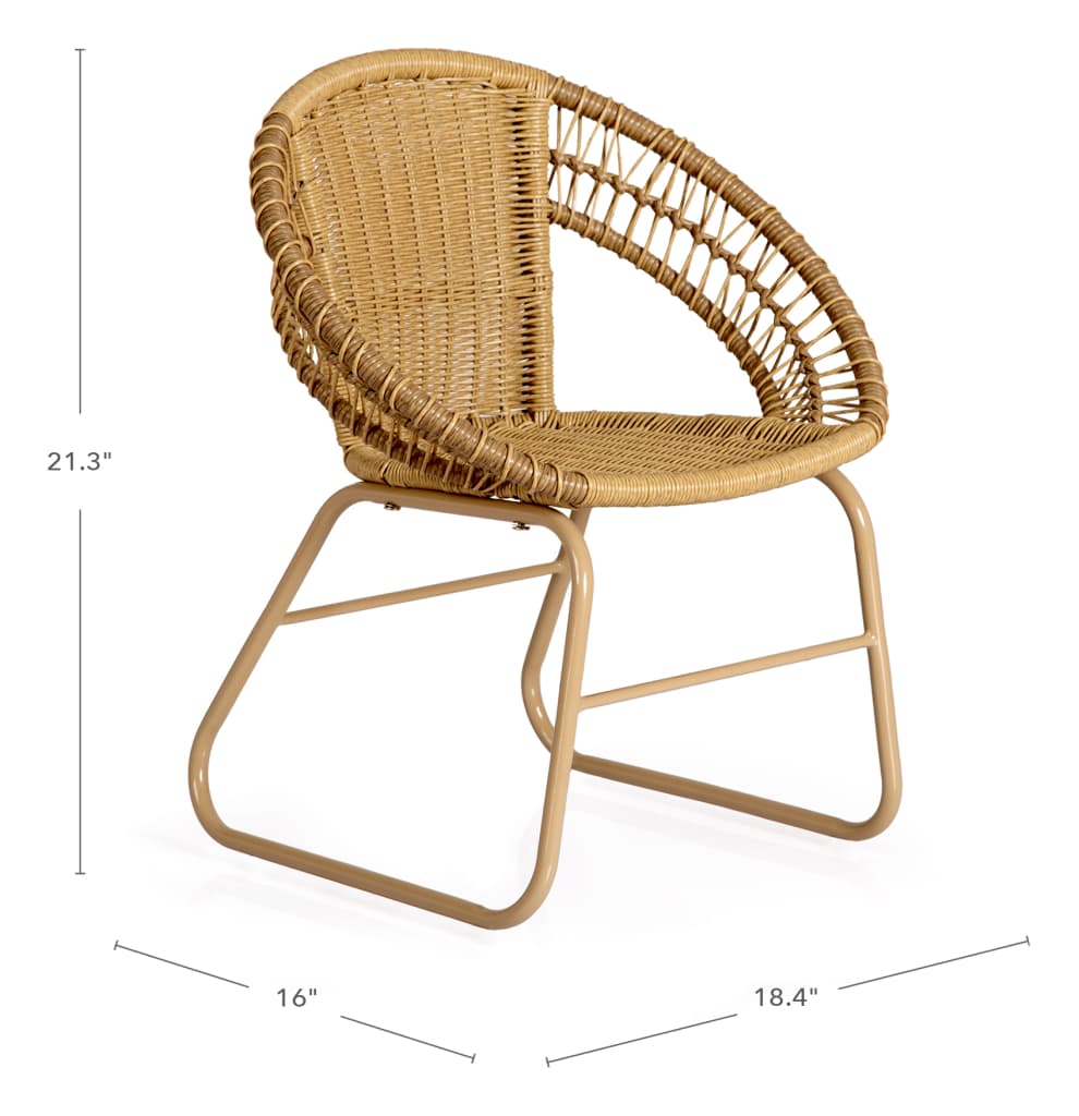 Create a peaceful oasis with easy-to-clean furniture that emphasizes nature-inspired textures and curves. Ergonomically designed to provide support and comfort, the Kids' Washable Wicker Chair is a unique take on traditional classroom seating with a distinct boho flair. This unique set is lightweight, sturdy, and stackable, making it the perfect addition to any indoor or outdoor learning environment. Combine with the Washable Wicker Mirrored Table (sold separately) to create a cohesive aesthetic. Each chair measures 18.4"W x 16"D x 21.3"H.