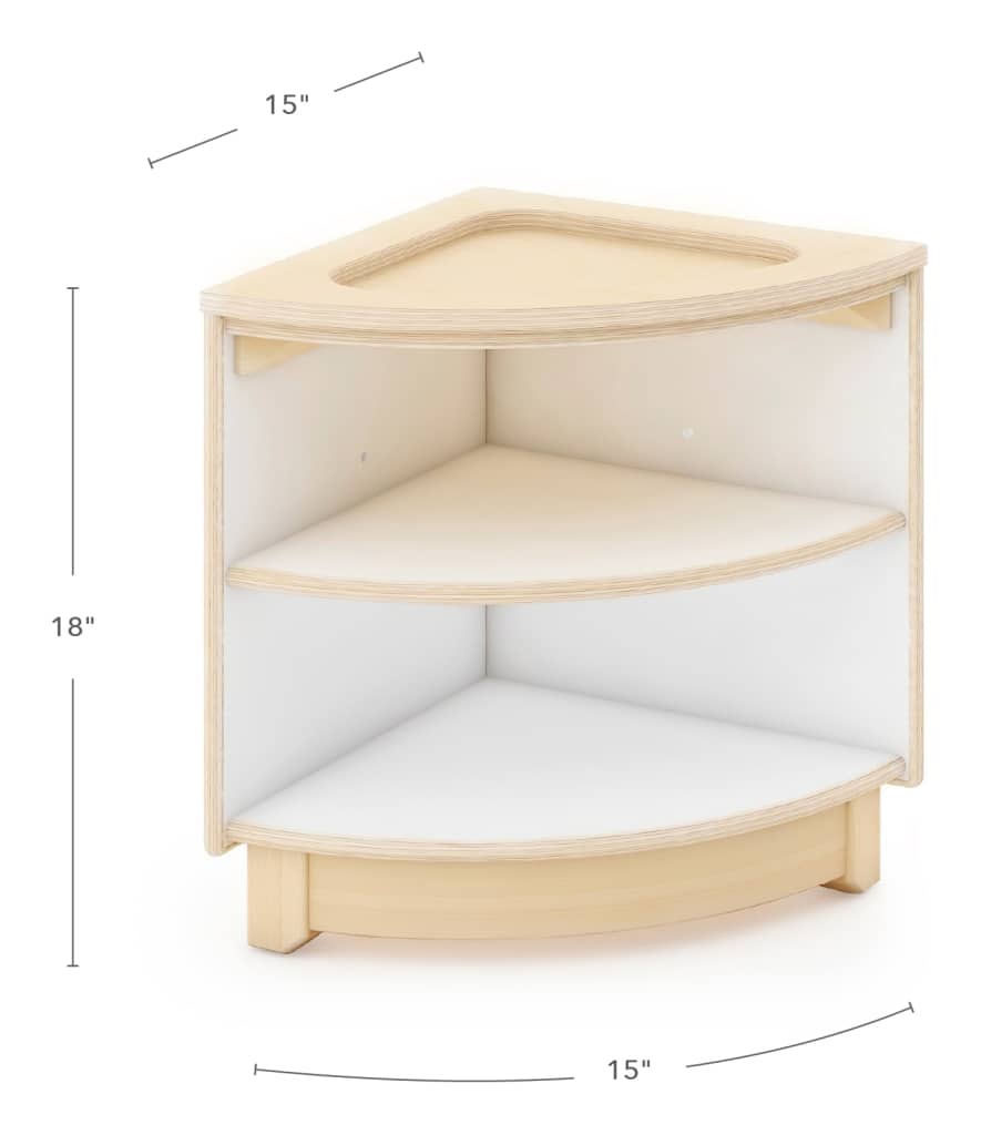 The Sense of Place for Wee Ones collection is the first modular furniture system that nurtures a child's inherent need to move, play and belong. Built upon extensive research and theory, this beautiful collection provides infants and toddlers with an environment that supports their innate play patterns and encourages physical and cognitive development. Constructed from a durable combination of FSC-sourced materials, the 18" Corner adds softness to the classroom through gently curves and rounded edges. The unique rounded elements and curved designs within this collection invite children to more comfortably interact with the furniture as they create authentic connections and engage in playful learning experiences in the classroom. Easily connect the Corner units to other pieces in the collection to create arrangements that can be reconfigured and reorganized to fit the needs of young enthusiastic improvisors. Unit is available in two different sizes to fit specific classroom needs. Measures 15"L x 15"W x 18"H.